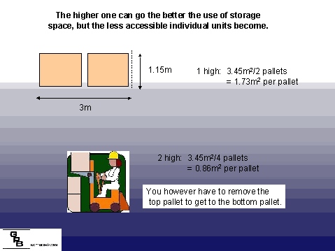 | The higher one can go the better the use of storage space, but the less accessible individual units become.